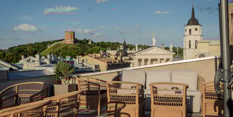 Kviečiame pakilti į karščiausią sezono žvaigždę – 3 „Mūzos Rooftop Bar“ terasą, Gedimino pr. 4, įsikūrusią Lietuvos Nacionalinio Dramos Teatro 5 aukšte. Kur atsiveria legendiniai vaizdai į senamiestį.